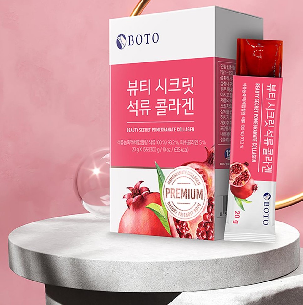 1) Contains 93.2% of pomegranate extract and low molecular fish collagen 1,000mg.